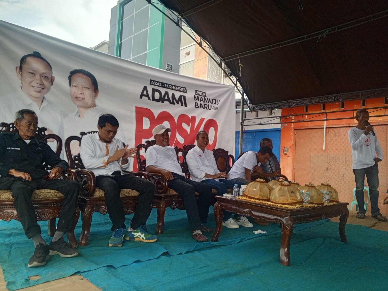 Dalam sambutannya, Ado Mas’ud memaparkan program ‘MAMUJU BARU’ yang mengedepankan kesejahteraan Masyarakat di berbagai bidang dan aspek, baik Petani, Nelayan, UMKM, Budaya, Pembangunan Infrastruktur dan, Penataan Kota serta tanpa ada batasan – batasan antara Masyarakat dengan Pemerintahan ‘ADAMI’ (Ado-H.Damris) kedepan.